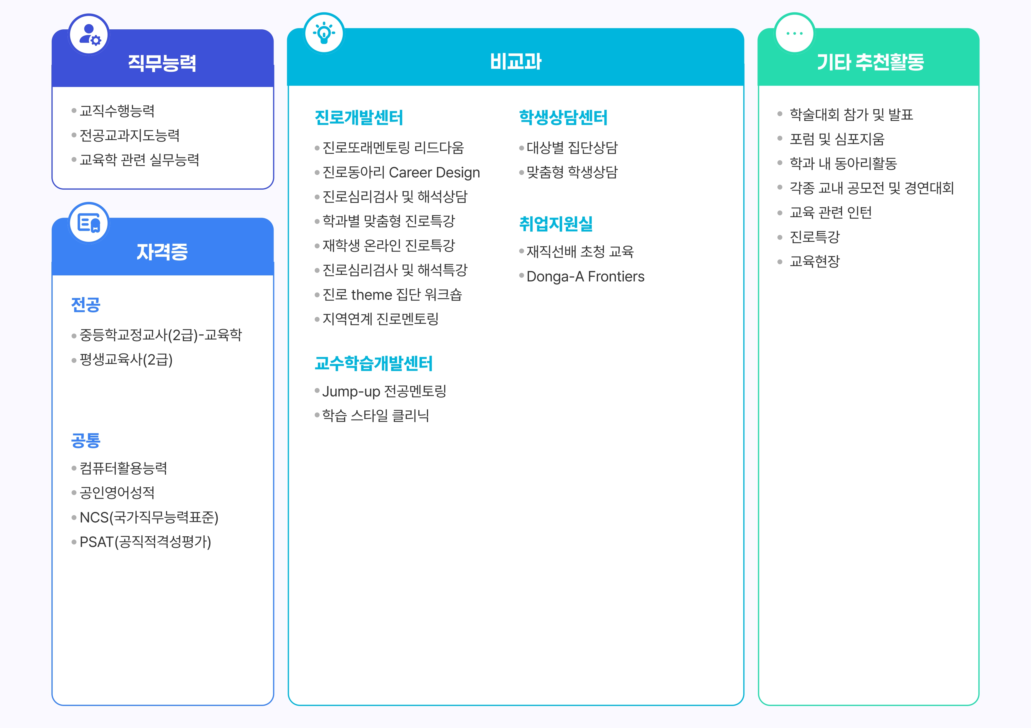 * 학과 내 교육과정을 통해 취득 가능