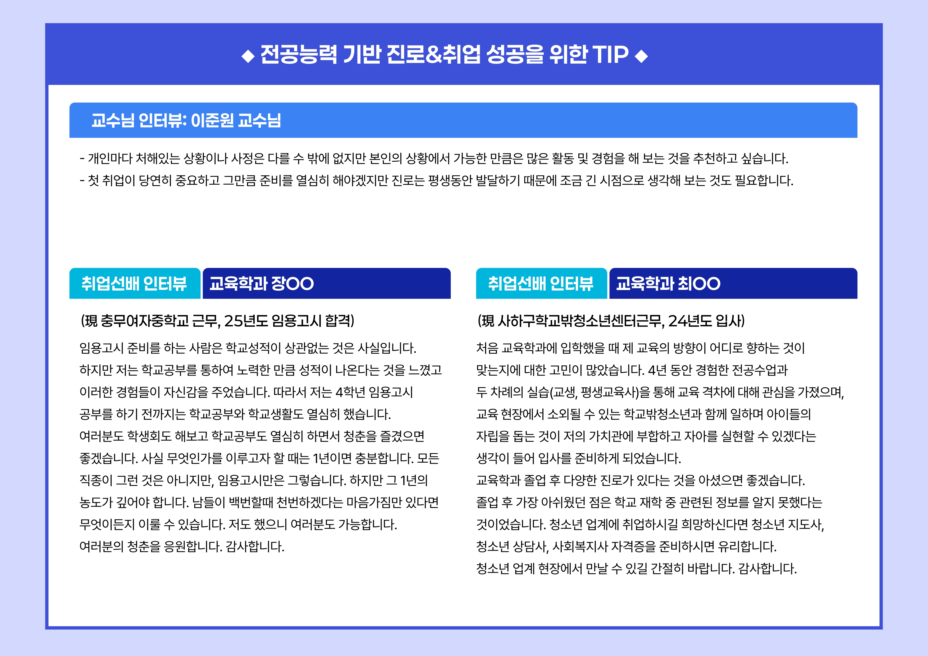 01 중등학교 교사, 전문상담교사** 진출 기관 : 초등학교, 중·고등학교